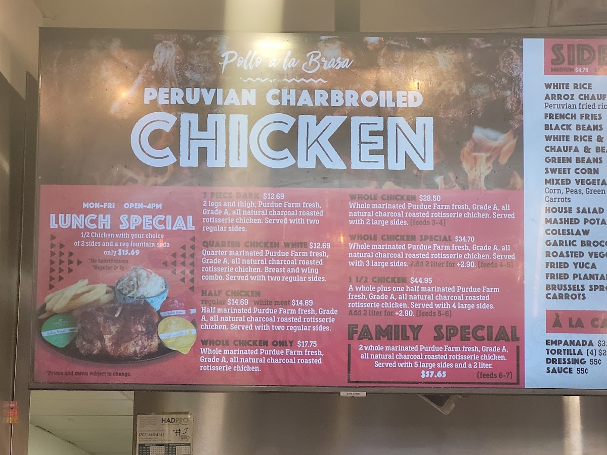 1/2 Chicken with your choice of 2 sides and a regular fountain soda.